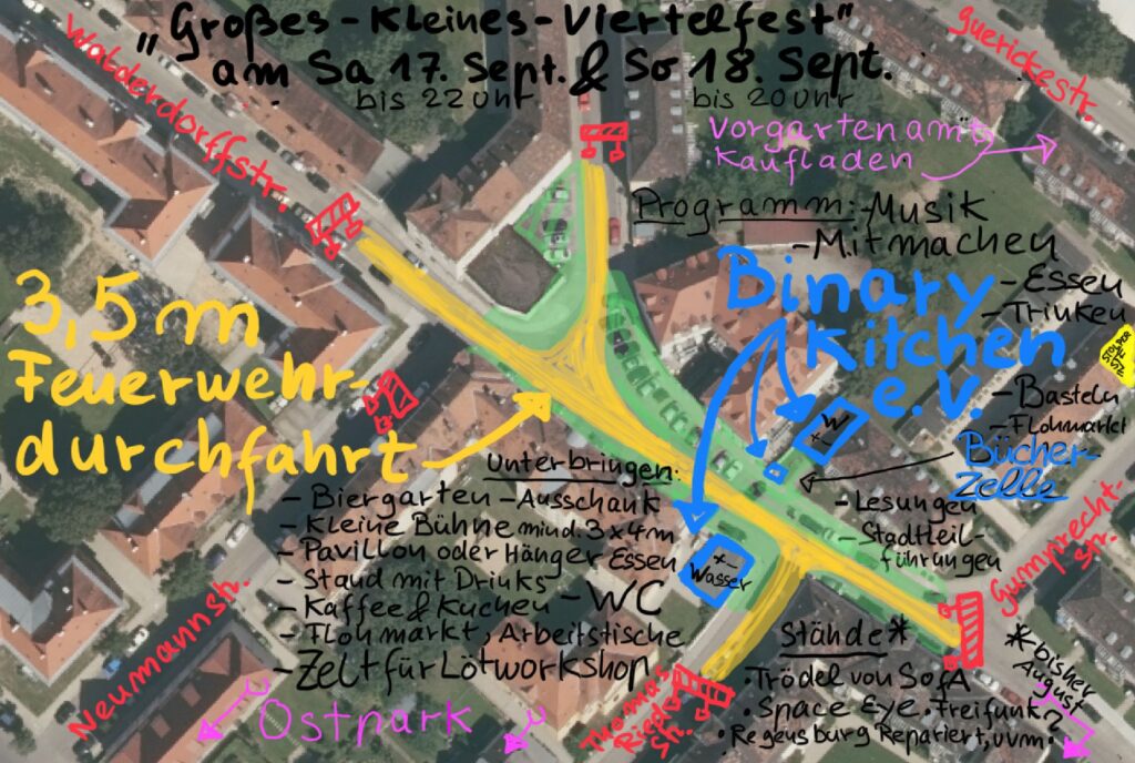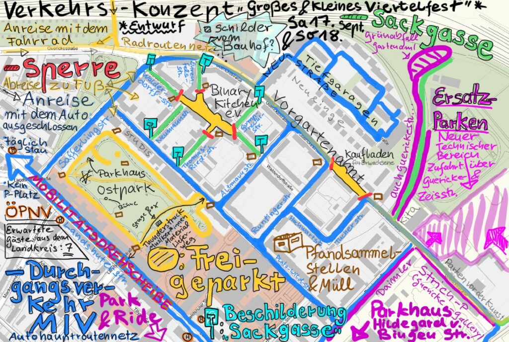 Im August startet das Modellprojekt „Radklusion“ des Instituts für Urbanistik im Entwicklungsgebiet Innerer Südosten. 3 Jahre wird in 4 verschiedenen Städten untersucht werden, wie das Fahrradfahren näher an einkommensschwache Bevölkerungsschichten gebracht werden kann. Um einen guten Start und einen tatsächlich effektiven Prozess zu ermöglichen, wollen wir uns schon vor Projektbeginn vernetzen und Entwicklungsmöglichkeiten aufzeigen, z.B. DiY Radwerkstatt im Pförtnerhäuschen des zukünftigen Obdachlosenasyls im Divisionsgebäude, Fahrradcafé im Innovationsquartier PLK, Radreparatur und Ersatzteillager beim Kulturviertel e.V. (PLK), Radlcafè beim Safferlingsteg, Radreparaturstation beim JUB und Reparaturwerkstatt im KfE*, wo neben Lastenradsharing nun auch eine Bushaltestelle andockt, Synergieen für kommerziellen Werkstätten, soziale und ehrenamtlich getragenen Strukturen, Feste, Events usw.