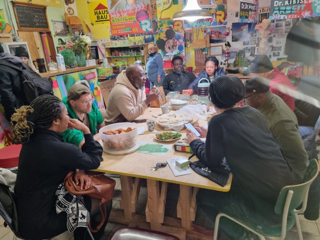 Einblicke in die Planungen zu Parkhaus-Projekt, Kulturbaustelle, „Implementiertes Ostpark Entwicklungskonzept / IOEK“…und Vorgartenamt beim Quartiersmanagement im JuB Guericke. Anschließend angeregter Austausch…..