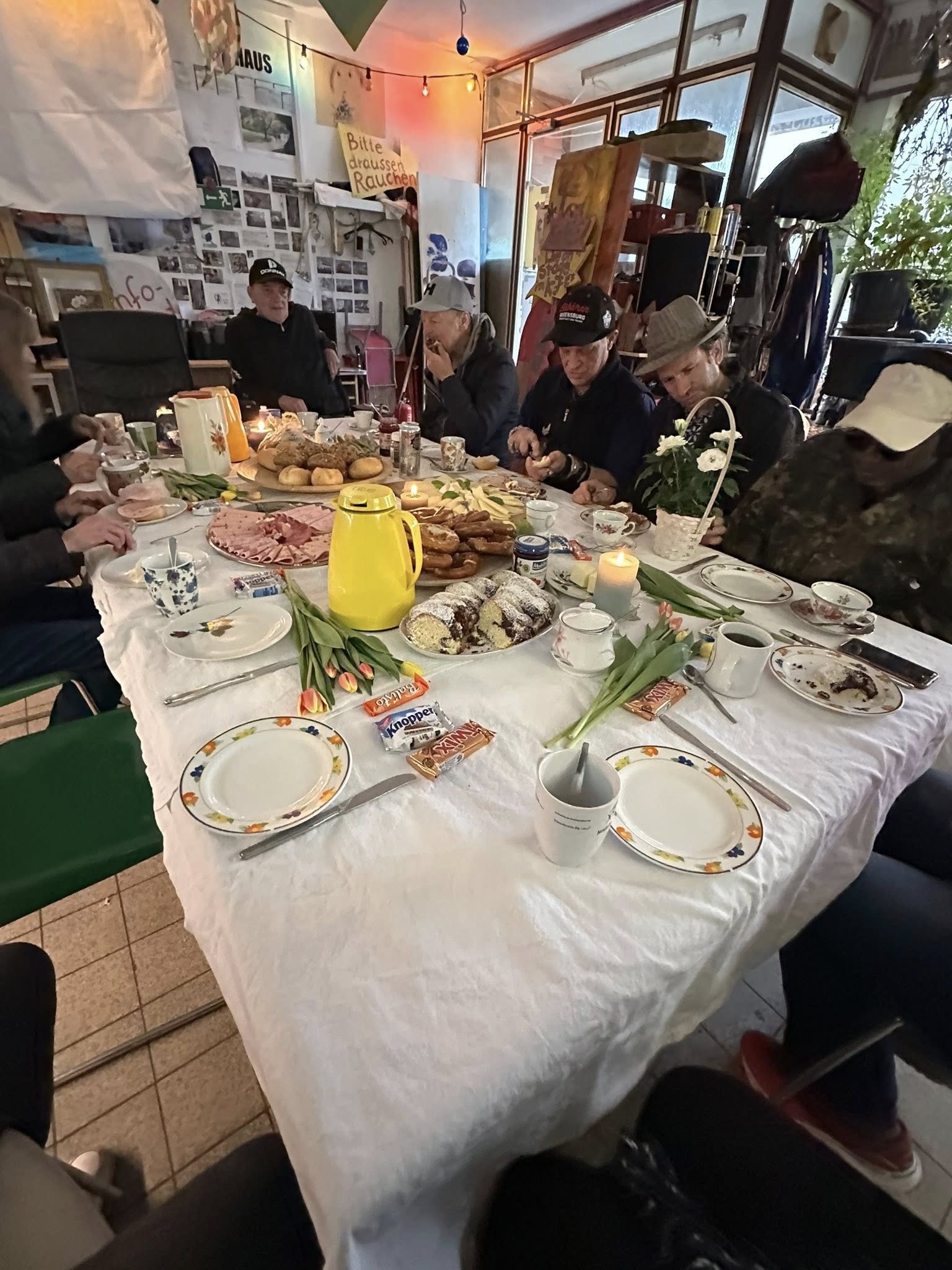 Gratis-Frühstück, gepflegte Unterhaltung, Beratung, Spielen und Hilfe zur Selbsthilfe.